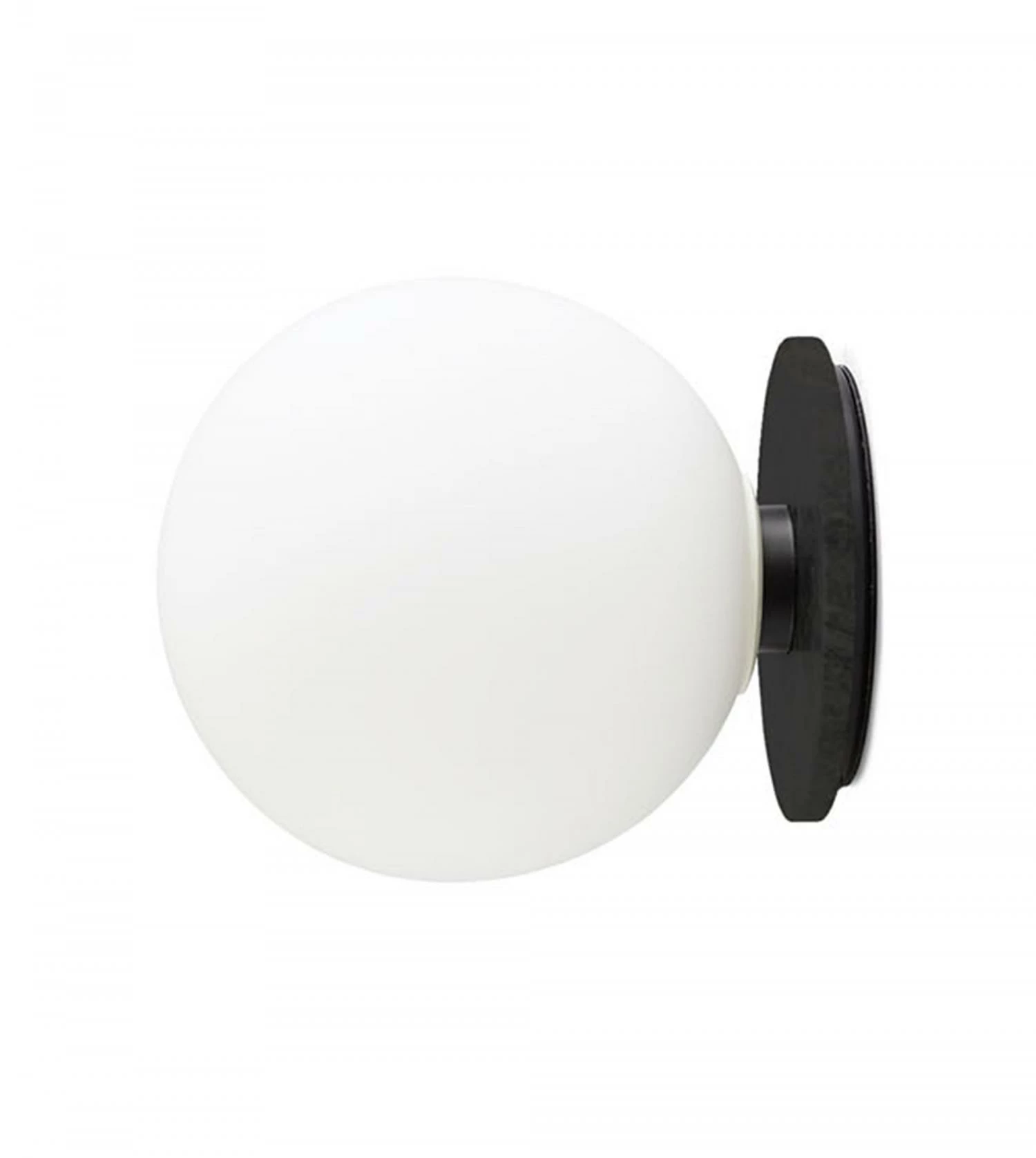Une petite applique composée d’une base en métal laqué et d’un globe en verre opalescent.