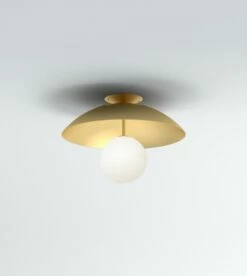 Variante du plafonnier Up and Down Bowl Down Atelier Areti (disponible chez BLOU), la ceiling light with tube se dote d’une tige en laiton et devient presque une suspension.
